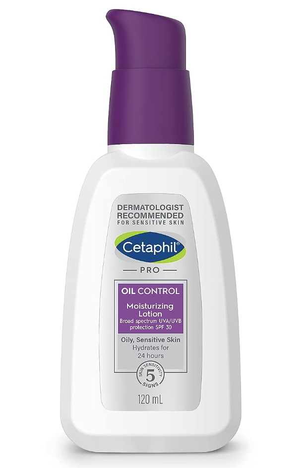 Cetaphil Oil Control Moisturiser SPF 30, Neutrogena Oil-Free Moisture, or Plum green tea mattifying moisturiser.