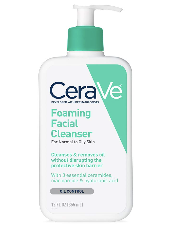 CeraVe Foaming Facial Cleanser, Plum green tea face wash, or Neutrogena Oil-Free Acne Wash.